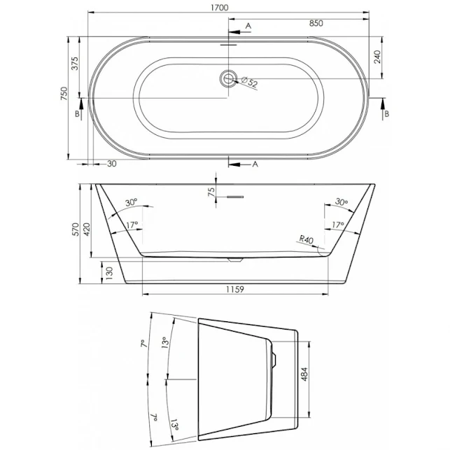 BC Designs Bletchley 1700 x 750mm Freestanding Double Ended Bath White – BAE002