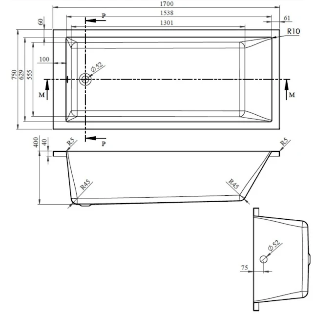- 1700 x 750mm single ended bath