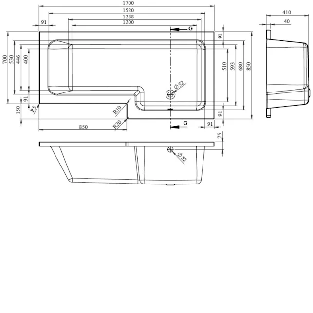 BC Designs SolidBlue L 1700mm x 850mm Right Handed L Shape Bath White – BAI010
