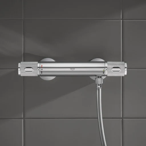 This modern bar shower valve from Grohe perfectly blends style with functionality. Enjoy the beautiful look of an exposed bar valve in your shower, which not only looks modern and sleek but is also extremely practical, too.