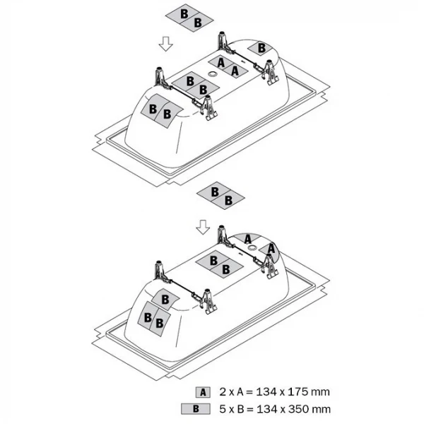 Please be aware this pack consists of 2 x Pad A and 5 x Pad B. Dimensions of pad’s are as follows: