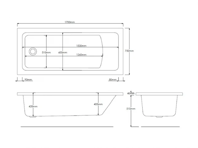 Roca The Gap Bath 1700 x 750mm NTH – 024718000