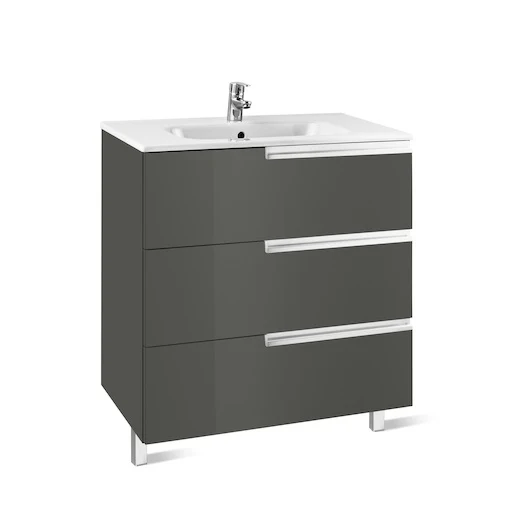 Determining the correct type of Bathroom Furniture is a key decision. Once you determine that Vanity Units provide the right answer then the Roca Victoria-N UNIK 800mm 3 Drawer Basin Unit & Basin Gloss Anthracite Grey – 855837153 is unquestionably worth putting on your shortlist.