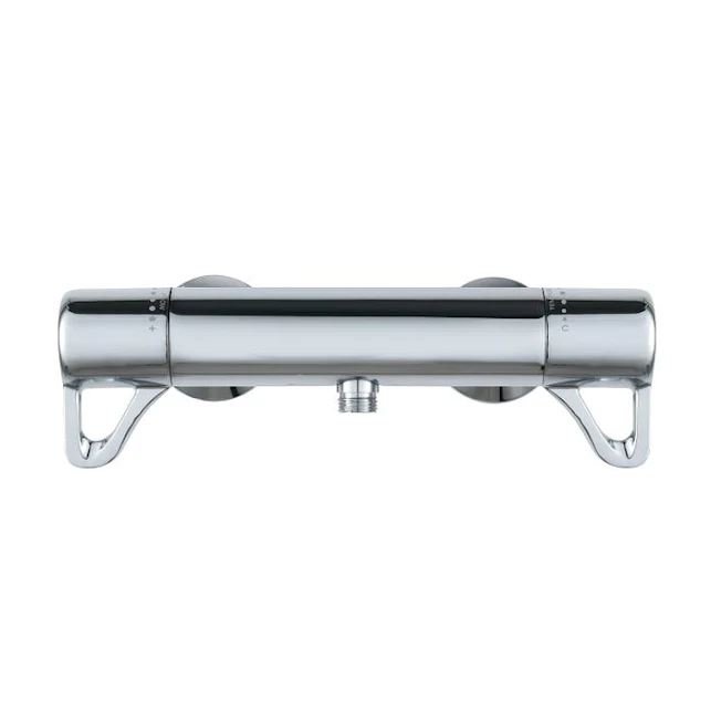 The Triton Elina Inclusive TMV3 Bar Mixer Shower Valve supplies a contemporary look to your suite. This exposed bar valve is suitable for all systems and pressures, and it’s thermostatic control makes it an ideal choice of valve in its gloss chrome finish.